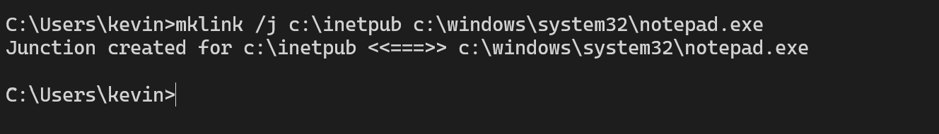 mklink /jc:\inetpub c:\windows\system32\notepad.exe