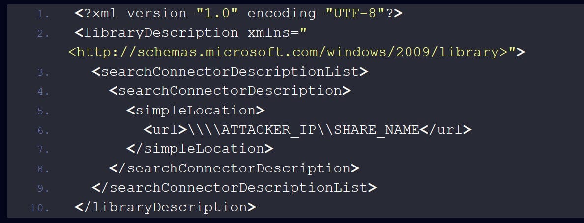 El archivo malicioso también contiene tres archivos más, concretamente 'xd.url', 'xd.website' y 'xd.link', que aprovechan antiguas fallas de fuga de hash NTLM y probablemente se incluyen por redundancia en caso de que falle el método 'library-ms'.