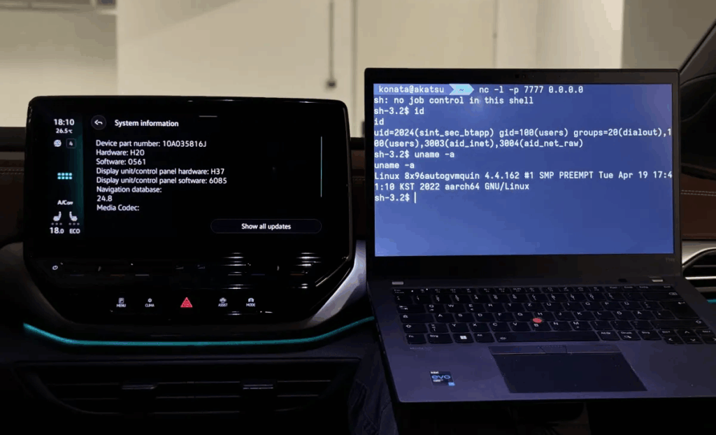 Demostraron cómo algunas de estas fallas podían encadenarse en lo que denominaron un ataque PerfektBlue para hackear remotamente el sistema de infoentretenimiento de un automóvil. Desde allí, el atacante puede rastrear la ubicación del vehículo, grabar audio desde el interior y obtener la información de la agenda telefónica de la víctima.