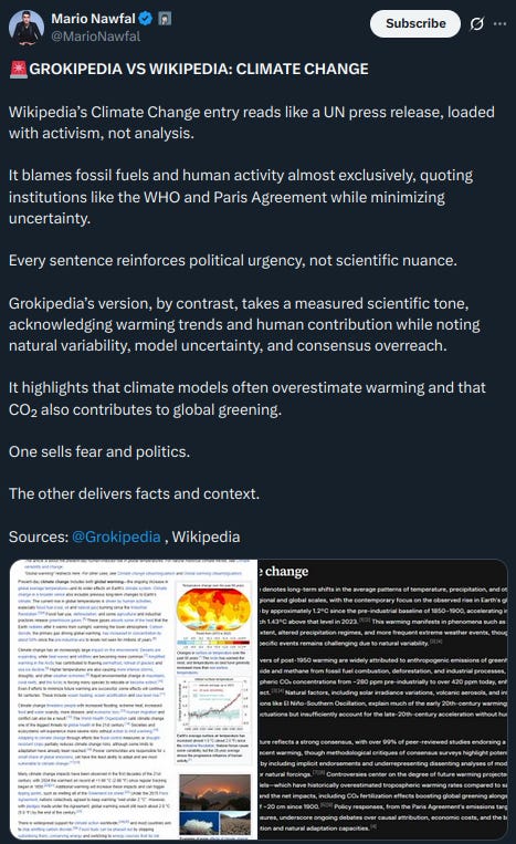 Mientras tanto, desde las redes sociales han emergido reacciones más elogiosas, sobre todo en X, también propiedad de Musk. Algunos usuarios han comparado artículos de Grokipedia con los de Wikipedia en torno a temas como el cambio climático, apuntando que en Grokipedia se incluyen críticas más explícitas al consenso científico tradicional. Se tienen en cuenta más variables y se abre una ventana hacia enfoques alternativos.